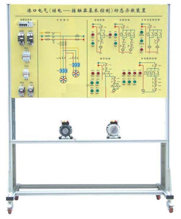 “港口電氣繼電-接觸器基本控制動態(tài)實訓裝置”是針對教學大綱要求和相關(guān)港口專業(yè)的教材內(nèi)容而設計。本裝置由港口電氣器件、彩色半透明噴繪PVC原理圖、單片機動態(tài)演示電路等構(gòu)成;本裝置通過理論講解、動態(tài)演示、動手操作,可以了解繼電-接觸器基本控制的基本理論,掌握港口電器自動化系統(tǒng)的工作原理和工作流程。