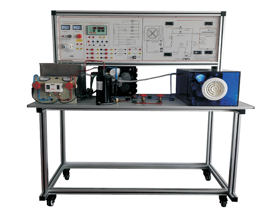 恒溫恒濕機(jī)組系統(tǒng)實(shí)驗(yàn)裝置是采用直流式空氣處理系統(tǒng),并配置壓縮機(jī)、風(fēng)冷冷凝器、蒸發(fā)器、加濕器、電加熱器和風(fēng)管等真實(shí)部件,可測量壓力、溫度、濕度等過程參數(shù)。通過對本裝置的實(shí)驗(yàn),能使學(xué)生熟悉直流式系統(tǒng)的空氣處理過程,并得到熱工測量和計(jì)算的基本訓(xùn)練。本裝置適用于“制冷空調(diào)原理及應(yīng)用”、“制冷空調(diào)技術(shù)”、“建筑電氣控制技術(shù)”等課程的實(shí)驗(yàn)教學(xué)。