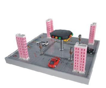 本企業(yè)設(shè)計(jì)開(kāi)發(fā)的模型為實(shí)際十字路口現(xiàn)況按比例微縮而成,主要由仿真實(shí)物建筑模型、車(chē)輛實(shí)物模型、道路模型及交通指揮燈等部件組成。有電源指示和控制、啟/停按鈕、手/自動(dòng)按鈕、行人呼叫按鈕、四方向紅/黃/綠燈點(diǎn)陣指示模塊(具有東西南北十二方向顯示)、四方向數(shù)碼倒計(jì)時(shí)顯示模塊,車(chē)輛行進(jìn)聲光指示(不同方向的車(chē)行進(jìn)時(shí)可用不同的聲音及指示燈進(jìn)行指示)等??刂破鞑捎茫蝗庵鳈C(jī)為FX1N-24MR 內(nèi)置開(kāi)關(guān)量I/O(14路開(kāi)關(guān)量輸入/10路數(shù)字量輸出)+FX2N-8EYR(8路數(shù)字量輸出)。選用的主機(jī)功能齊全,性能優(yōu)越。實(shí)訓(xùn)操作靈活方便,能滿(mǎn)足大中專(zhuān)院校、職業(yè)技術(shù)學(xué)校、職教中心可編程控制器技術(shù)的教學(xué)、課程設(shè)計(jì)和畢業(yè)設(shè)計(jì)。