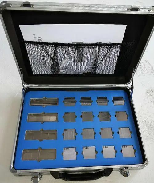 外圓車削表面粗糙度對比零件1套、端面銑表面粗糙度對比零件1套、刨削表面粗精度對比零件1套、平面磨削表面粗糙度對比零件1套等組成;