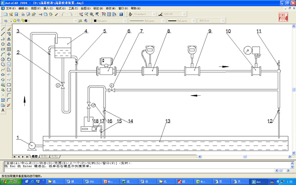 7.比例調(diào)節(jié)閥; 8. 渦街流量計; 9. 渦輪流量計; 10. 孔板流量計; 11. 放氣閥; 13. 水槽;