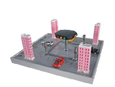 本企業(yè)設(shè)計開發(fā)的模型為實際十字路口現(xiàn)況按比例微縮而成,主要由仿真實物建筑模型、車輛實物模型、道路模型及交通指揮燈等部件組成。有電源指示和控制、啟/停按鈕、手/自動按鈕、行人呼叫按鈕、四方向紅/黃/綠燈點陣指示模塊(具有東西南北十二方向顯示)、四方向數(shù)碼倒計時顯示模塊,車輛行進(jìn)聲光指示(不同方向的車行進(jìn)時可用不同的聲音及指示燈進(jìn)行指示)等??刂破鞑捎?;三菱主機為FX1N-24MR 內(nèi)置開關(guān)量I/O(14路開關(guān)量輸入/10路數(shù)字量輸出)+FX2N-8EYR(8路數(shù)字量輸出)。選用的主機功能齊全,性能優(yōu)越。實訓(xùn)操作靈活方便,能滿足大中專院校、職業(yè)技術(shù)學(xué)校、職教中心可編程控制器技術(shù)的教學(xué)、課程設(shè)計和畢業(yè)設(shè)計。