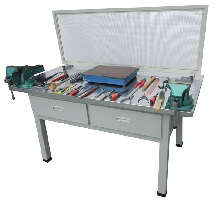 鉗工實(shí)驗(yàn)室(一張桌2工位/組)每組詳細(xì)配置如下:可以完成常用工具的認(rèn)識(shí)和使用,錘、鋸、銼、鑿、劃線、裝配、調(diào)試、安裝、維修等教學(xué)工具。
