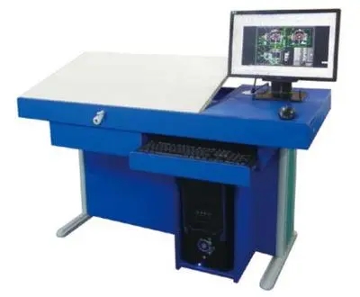 1、本工程制圖桌具有手動(dòng)作圖與電腦作圖一體化,左邊配有一號(hào)圖版手工作圖,右邊放置電腦顯示器與鼠標(biāo),下部有一個(gè)抽屜和鍵盤抽屜,電腦軟件畫圖如CAD、CAXA等