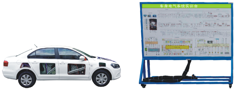 選用 北汽EV150 原裝純電動轎車原車車身和低壓控制實(shí)物系統(tǒng),完整的車身進(jìn)行部切處理(外露電器部件),剖面位置合理,能清楚展示內(nèi)部結(jié)構(gòu)。