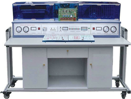 變頻空調制冷制熱綜合實驗設備采用了變頻技術,先將單相交流電源經整流橋整流成 直流電,又經三相逆變橋把直流電“逆變”成頻率任意可調的三相交流電,自動控制 壓縮機的速度,達到節(jié)能的目的。另外新增加其它類型的空調、冰箱系統及電路十幾 個機種,有利于學生更全面地掌握制冷制熱技術。分體空調為立體結構,前面為仿真 室內機組,后部為仿真室外機組,室內機組改進為真實空調組件,外套真空調全透明 外殼。冰箱方面也進行了改進,前后格分開:前面為冷凍室,后面為電冰箱壓縮機、 工作室、加裝溫度調節(jié)器。