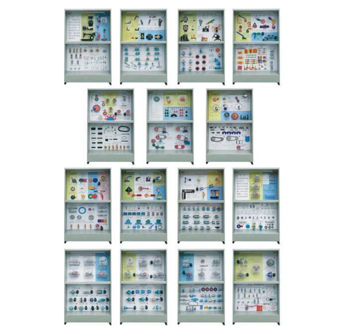 該設(shè)備是根據(jù)大中專院校、職業(yè)學校的教學大綱設(shè)計的多功能機械綜合示教室是一套《機械原理》、《機械零件》、《減速器》共500余種模型,分三大類合并成的電化教學設(shè)備。共15個柜,30個板面。該設(shè)備采用新型觸摸液晶屏電腦控制主控臺。mpc解說,觸摸屏、遙控控制,聲控同步循環(huán)播放進行演示;又根據(jù)教材,教學需要而任意選擇單獨運轉(zhuǎn)演示。本產(chǎn)品的特點:使作方便,占地面積小,結(jié)構(gòu)新穎實用,制作工藝更加美觀,整套設(shè)備演示形象逼真,運行可靠,有效的提升了教學生動性、趣味性及產(chǎn)品壽命。是一套現(xiàn)代化的機械課程示教室設(shè)備。