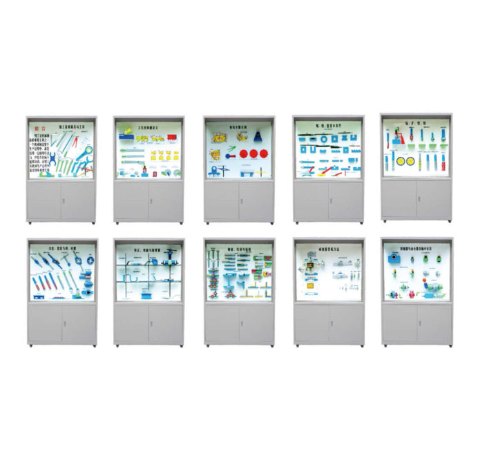 為了滿足教學需求,不斷提高技工學校的培訓(xùn)質(zhì)量,還強調(diào)了基本理論和基本技能的訓(xùn)練,本陳列柜主要介紹鉗工的工件的劃線與加工、機器的裝配與調(diào)試、設(shè)備的安裝與維修及工具的認識等。深入了解學習的基本知識,以手工操作為主、靈活性強、工作范圍廣、技術(shù)要求高,操作者的技能水平直接影響產(chǎn)品質(zhì)量。因此,鉗工是機械制造業(yè)中不可缺少的工種。