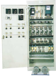 該裝置按標(biāo)準(zhǔn)電氣控制柜設(shè)計(jì)制造規(guī)格,充分利用雙面位置,柜內(nèi)裝有完成各種照明電路所需的單相電度表、日光燈、單聯(lián)開關(guān)、插座、感應(yīng)開關(guān)、漏電開關(guān)等,以及電氣控制所需要的多種低壓電器,如漏電斷路器、熔斷器、電流互感器、交流接觸器、時間繼電器、熱繼電器、中間繼電器、行程開關(guān)、按鈕、信號燈、轉(zhuǎn)換開關(guān)、電壓表、電流表、功率表及電度表等,為了延長電器使用壽命,各電器的接點(diǎn)都與接線端子相連,再由接線端子與被控制電氣連接。