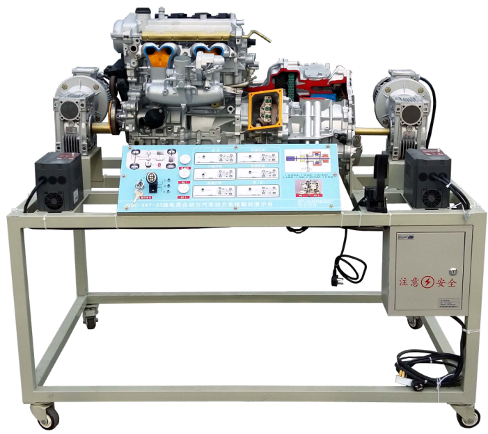 豐田普銳斯混聯(lián)式混合動力系統(tǒng)(包括:發(fā)動機、發(fā)電機和電動機等)總成,三相齒輪減速感應電機,三相漏電保護開關,移動臺架(帶自鎖腳輪裝置)