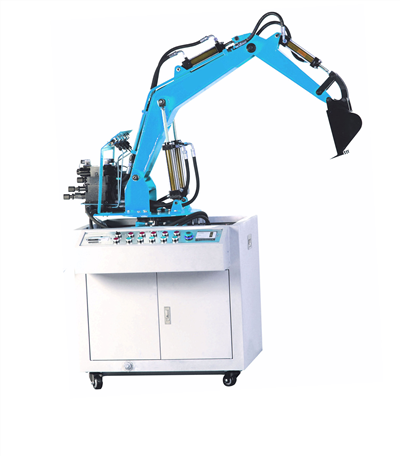 3、挖掘機械按實物比例縮小的全金屬結構,實驗時啟動液壓系統(tǒng)根據(jù)實驗要求模以操作機械進行工作。
