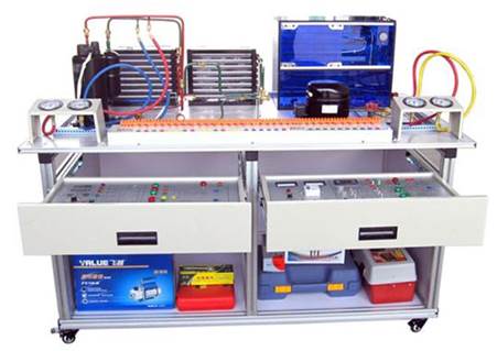 現(xiàn)代制冷與空調(diào)系統(tǒng)技能實(shí)訓(xùn)裝置是專門為職業(yè)院校制冷類專業(yè)而研制的制冷制熱實(shí)訓(xùn)設(shè)備,根據(jù)制冷制熱類行業(yè)中空調(diào)與冰箱維修技術(shù)的特點(diǎn),針對(duì)空調(diào)和冰箱的電氣控制以及制冷系統(tǒng)、電氣控制系統(tǒng)、系統(tǒng)調(diào)試、故障診斷等特點(diǎn)進(jìn)行設(shè)計(jì)。強(qiáng)化了學(xué)生對(duì)空調(diào)冰箱系統(tǒng)管路的安裝與維修系統(tǒng)調(diào)試等的等的綜合職業(yè)能力。本裝置由空調(diào)系統(tǒng)模塊,冰箱系統(tǒng)模塊,電源及儀表模塊,空調(diào)電氣控制模塊,冰箱電子溫控電氣控制模塊,冰箱智能溫控電氣控制模塊等組成。通過(guò)設(shè)備進(jìn)行項(xiàng)目訓(xùn)練,能提高學(xué)生的動(dòng)手操作能力,計(jì)劃組織能力,制冷系統(tǒng)的調(diào)試安裝能力,電氣控制電路維修能力等是現(xiàn)代制冷制熱技能實(shí)訓(xùn)的必要工具。